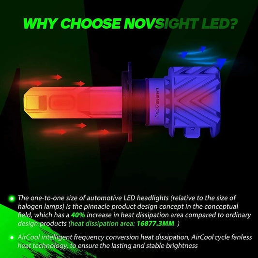 Nighteye N11 50W H7 LED Headlight Bulb Single Pc - Novsight H7 NOVSIGHT N11 SERIES H7 LED Headlight Bulbs