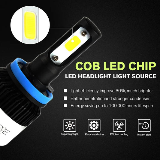 ORIGINAL NIGHTEYE H8/H9/H11/H16 LED Headlight Bulb for Car and Bike White, 72W, 2 Bulbs - 9000 Lumens ULTRA BRIGHT, Type H8/H9/H11/H16 (Original Nighteye)
